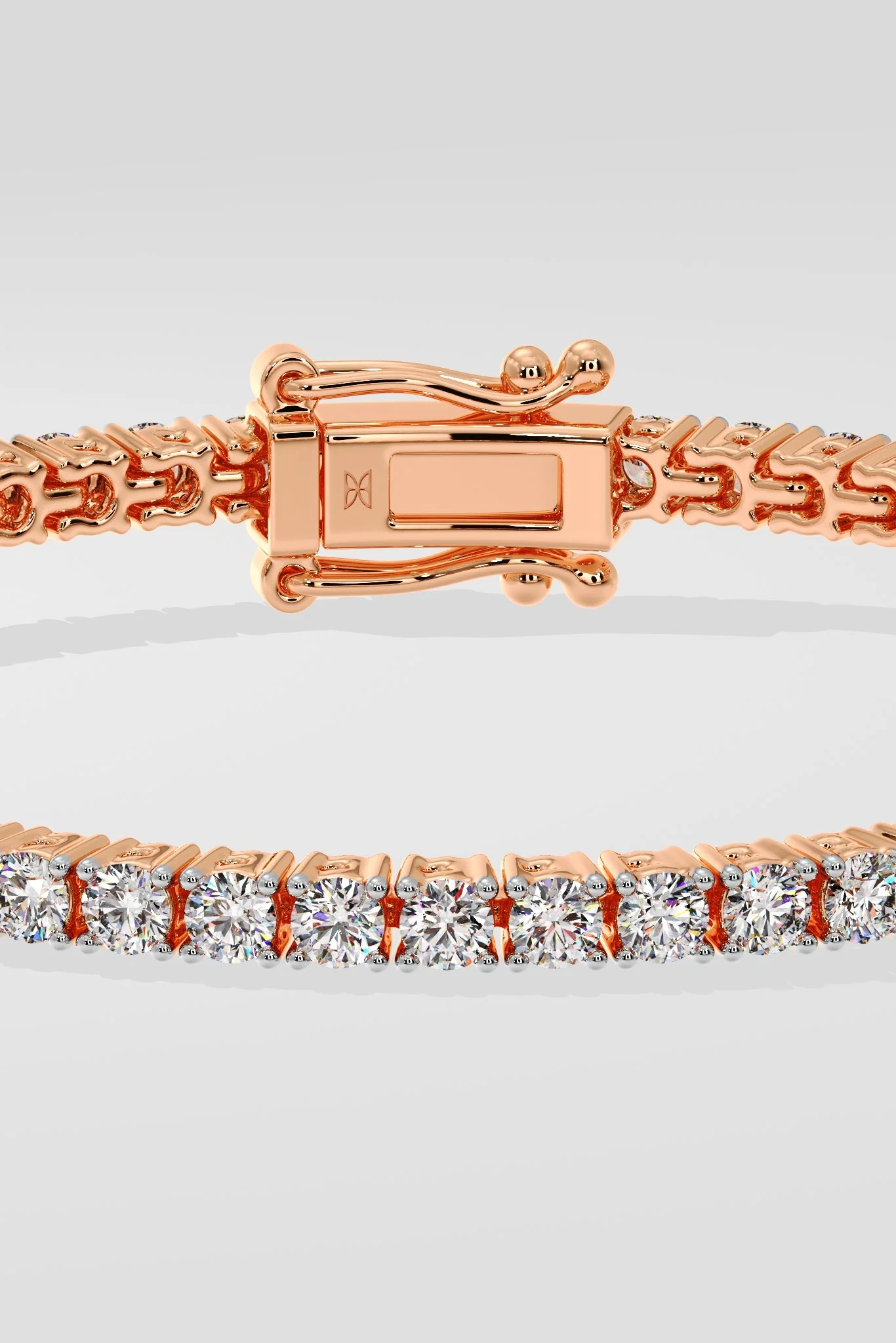 The quintessential Classic Tennis Bracelet is an everyday staple. This 4.9 ct bracelet features 0.08 ct diamonds set in a classic 4 prong setting and is full eternity, i.e. completely studded end-to-end. Available in white or yellow gold option as well.