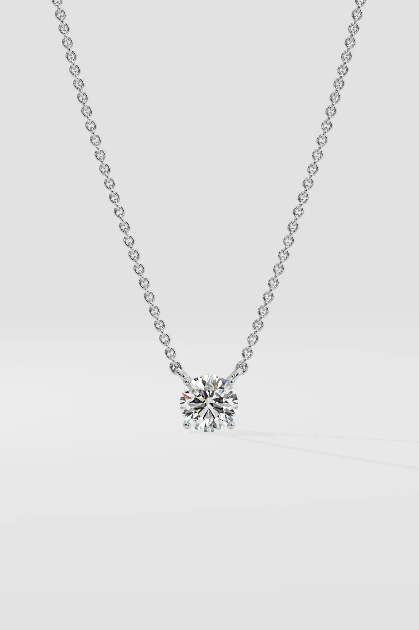 A classic solitaire pendant combines well with everything in your neck stack. This 0.50 ct round brilliant is elegance and sophistication. Classic prong setting with the dainty chain attached at an angle to let the diamond sparkle. Will look great in a rose gold option too.