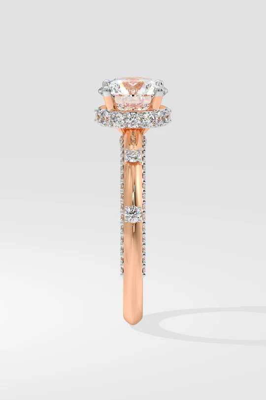 The Invisible Halo Solitaire Ring has a 1.25 ct center stone. A signature ring in this collection, this combines the special invisible Halo, spaced diamonds with the side studded diamonds to make an ultra-luxury statement. Dazzling, at the same time delicate, you haven’t seen anything like this before.