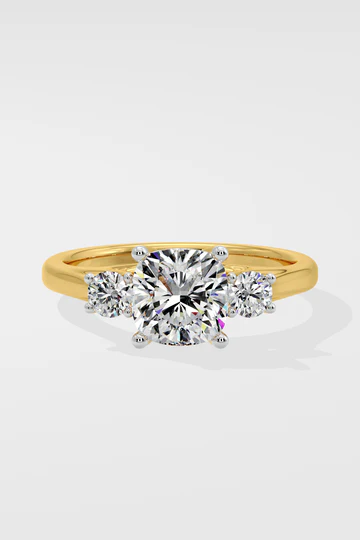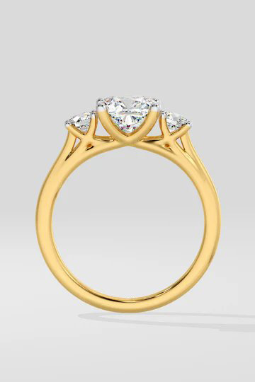 The 1.5ct Trio Cometa Ring features a 1.5ct round center diamond, accentuated by two 0.10ct diamonds on either side. Simple classic eleganace, this is a timeless style.