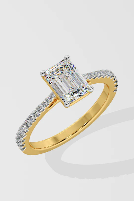 This Emerald ring is all time favourite. With a 1 ct center emerald, with a classic studded shank.