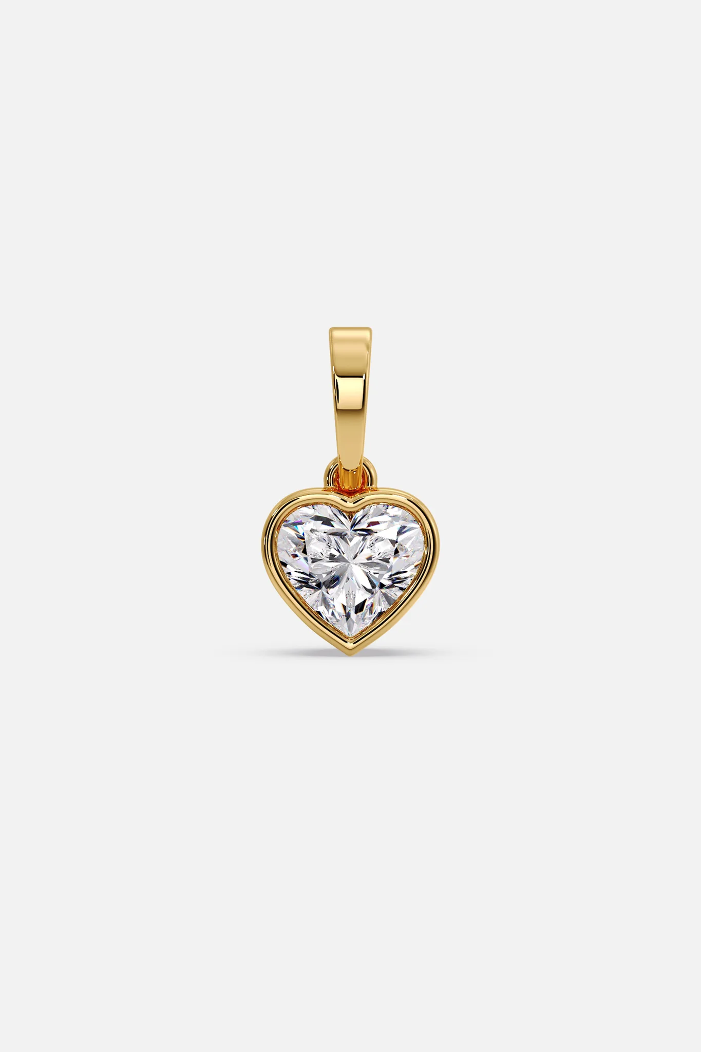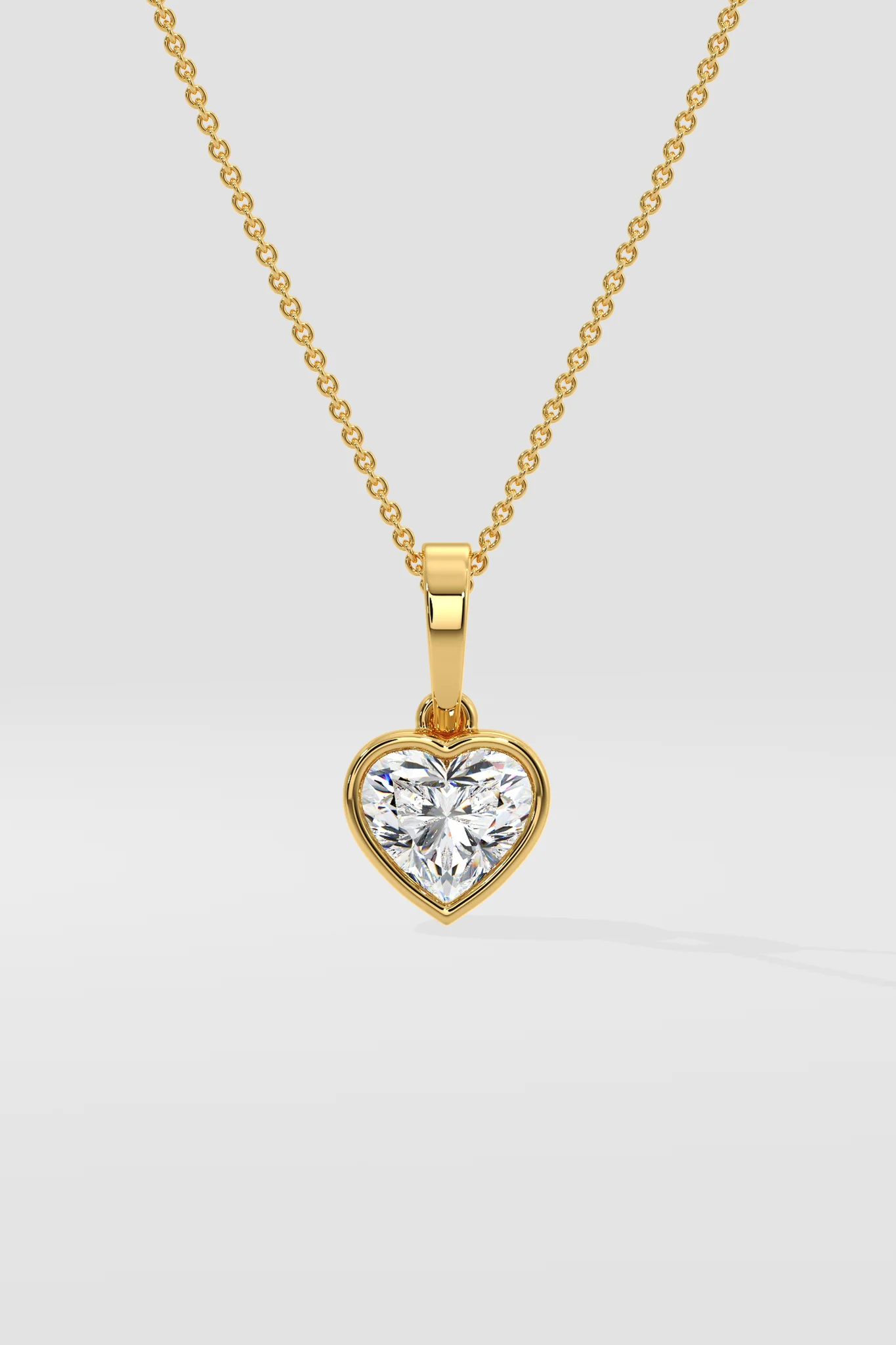 The 1 ct Heart Bezel Pendant features a heart-shaped diamond set in a sleek gold bezel. Its refined design gives a complete, polished look.
