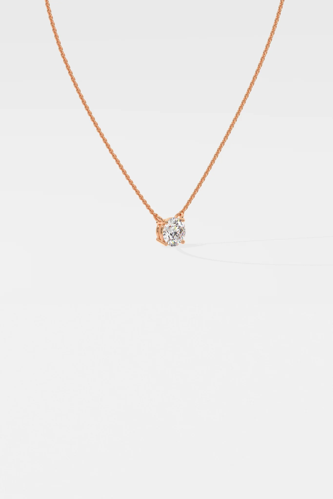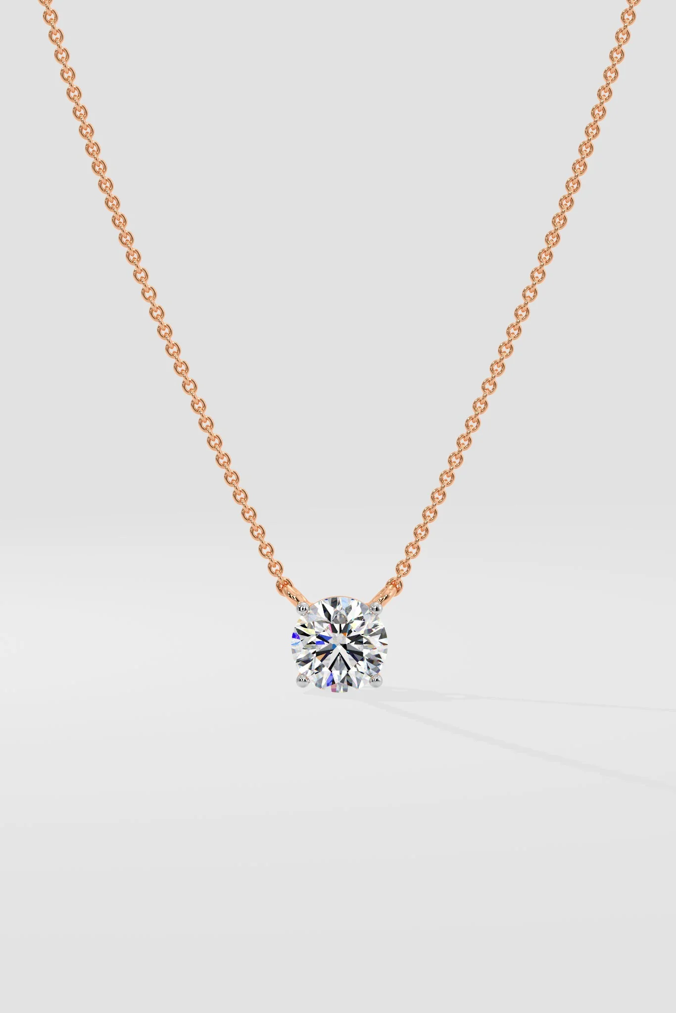 A classic solitaire pendant combines well with everything in your neck stack. This 1 ct round brilliant is elegance and sophistication. Classic prong setting with the dainty chain attached at an angle to let the diamond sparkle. Will look great in a rose gold option too.
