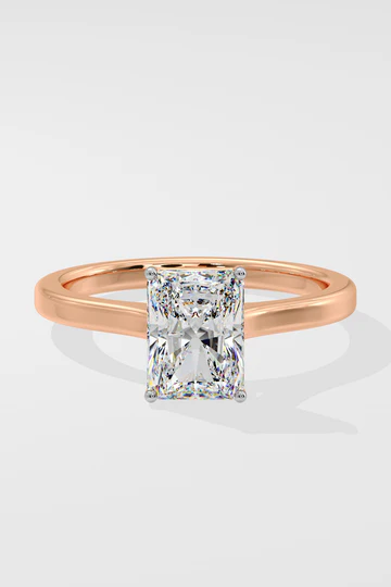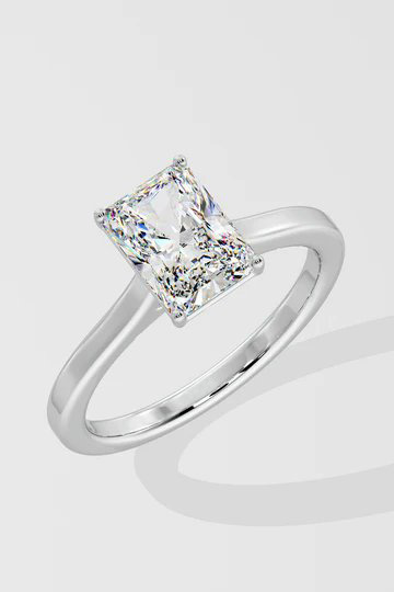 Classic 2 ct Radiant centre. Completely minimal keeping the solitaire as the highlight. Colour option in rose will look as good. Add the eternity to create your own stack.