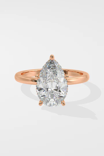 Askew 2ct Hidden Halo Pear Ring: a true showstopper that exudes confidence! This mesmerizing solitaire ring features a dazzling 2ct center diamond, elegantly nestled within a unique hidden halo setting.