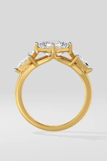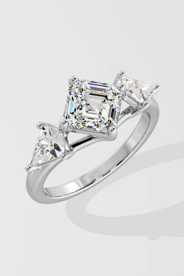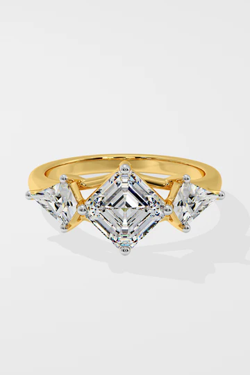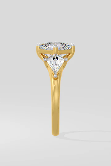 The 2 ct Princess Kite Ring features a stunning 2 ct princess-cut diamond set at an angular tilt, accented by 0.07-pointer kite-set diamonds for a bold geometric flair. Perfect for those who love unique designs, this ring is a true statement piece. Its modern elegance ensures it stands out beautifully in any setting.