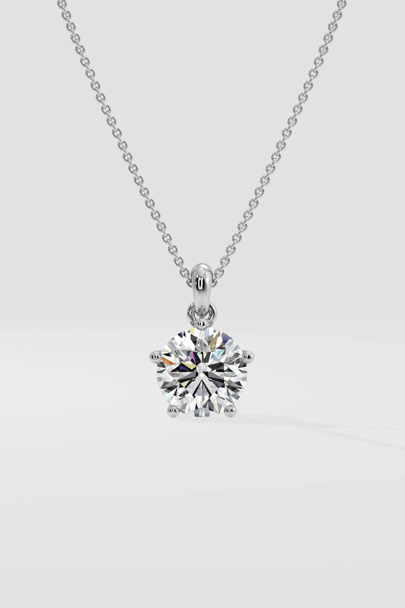 The 2 ct solitaire pendant features a brilliant diamond with a secure 5-prong setting. Its flat back design ensures it stays perfectly in place, allowing you to effortlessly shine all day, every day.