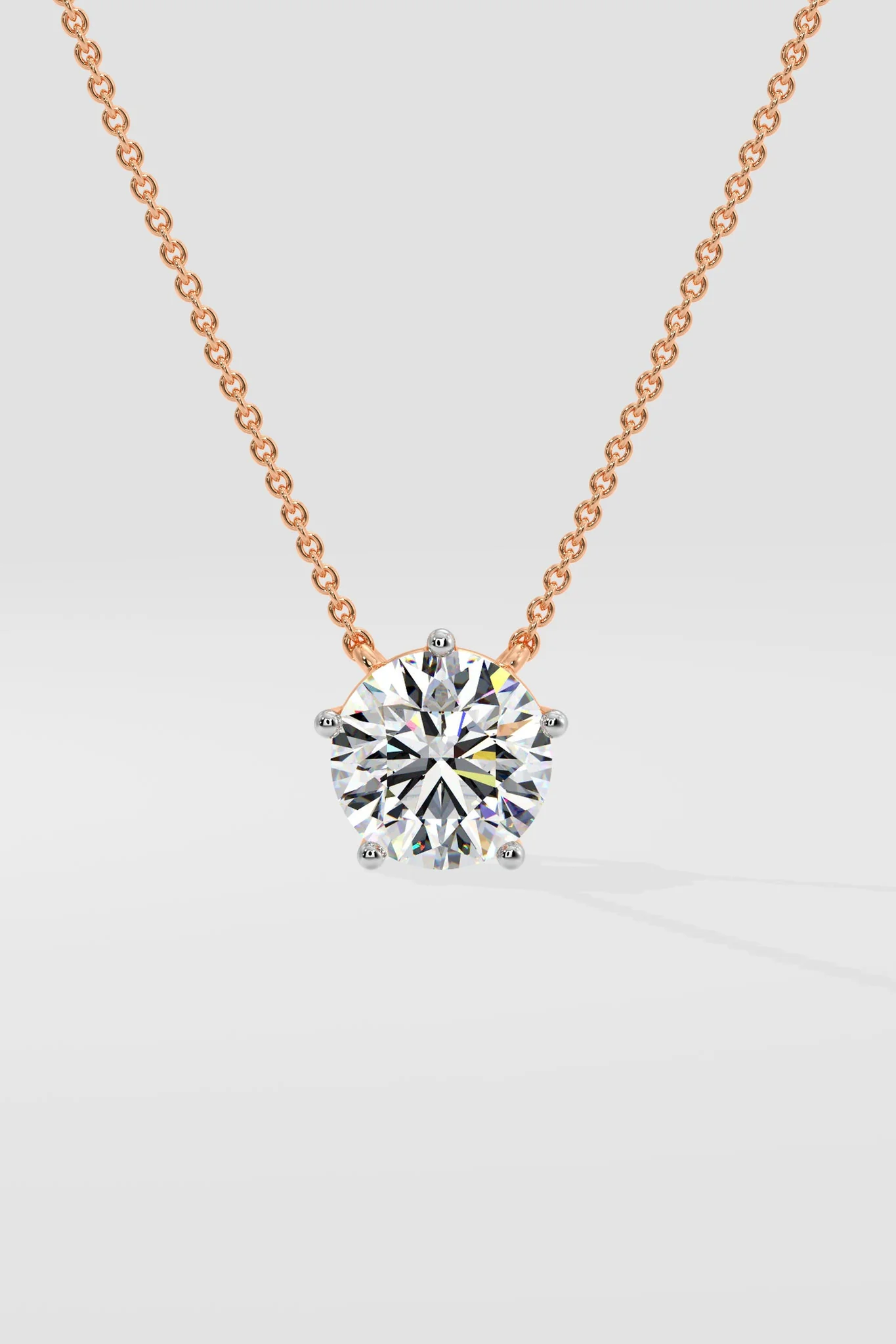 A classic solitaire pendant combines well with everything in your neck stack. Made in 5 prong setting with the dainty chain attached at an angle to let the diamond sparkle.