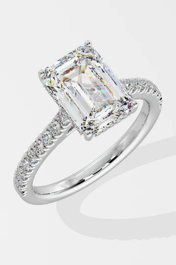 The Invisible Halo Ring is a masterpiece. With a 4 ct center rock, and a 360 invisible halo, this is the epitome of luxury. Go big and go bold.