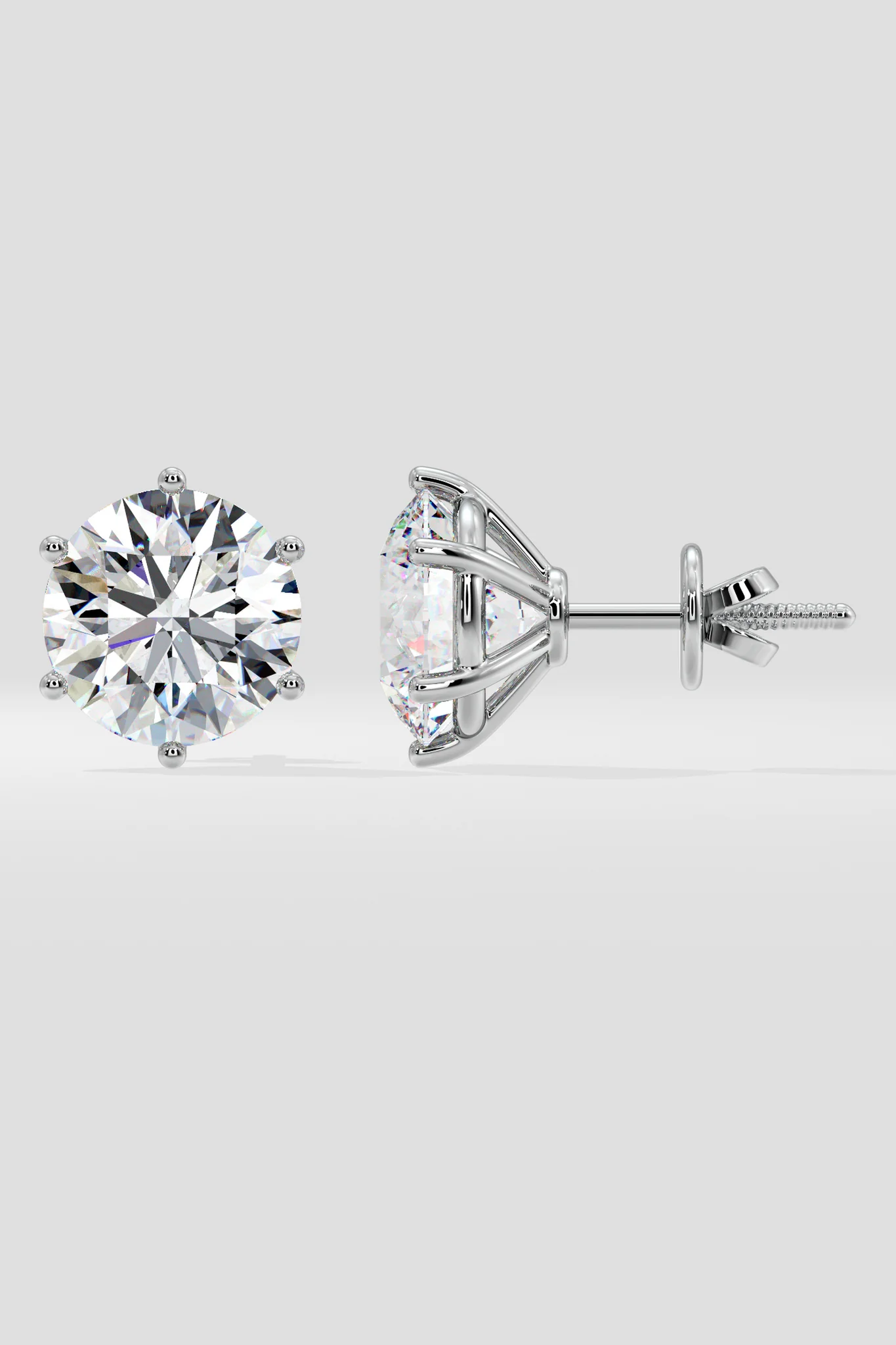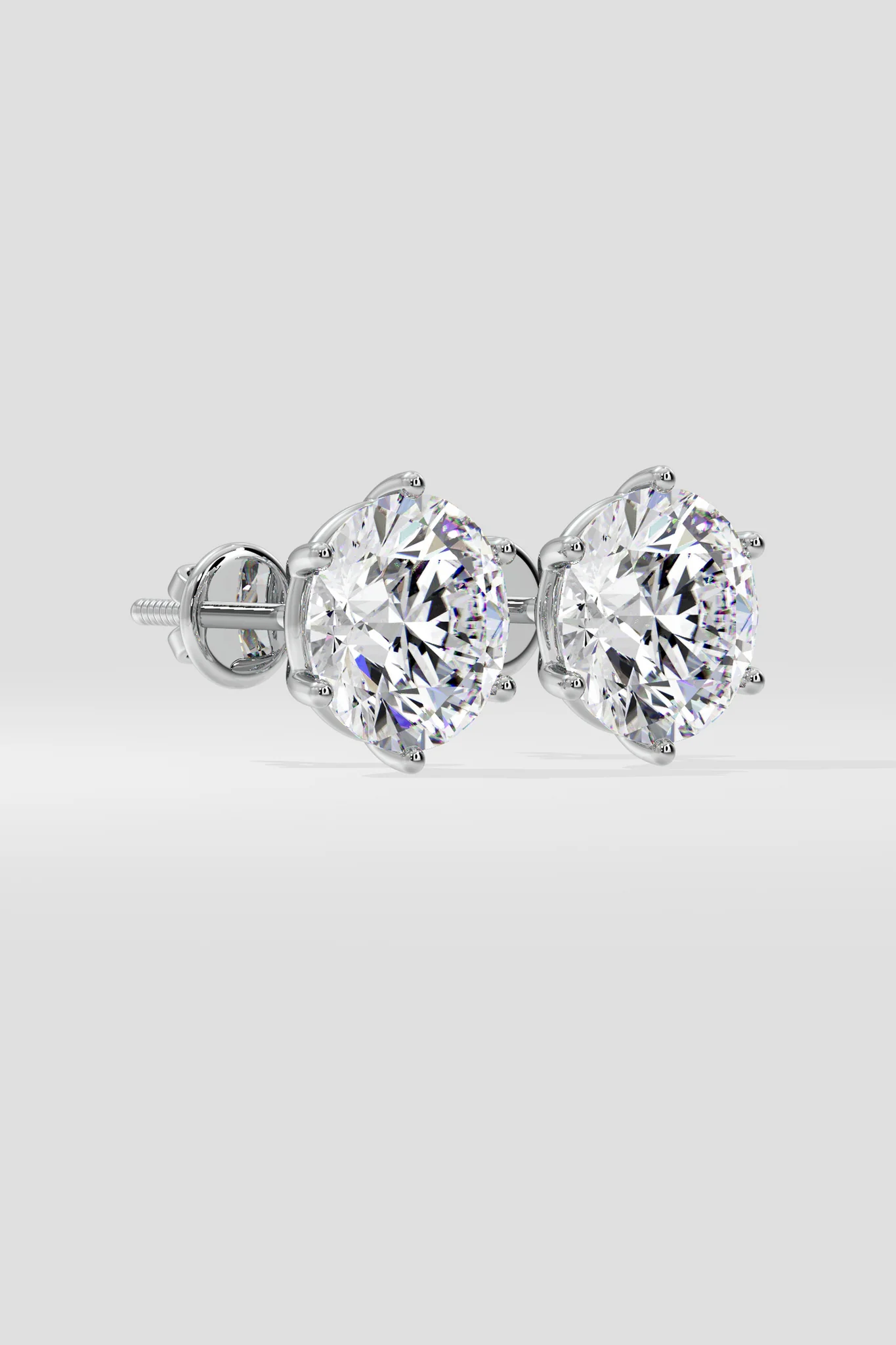 Classic studs in 3.5 ct each set in six prongs. The conical back makes this a soft sitting style for your ears, making sure the diamond is visible from all angles. Rose gold with rhodium plated tips on the prongs.