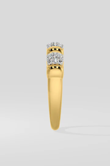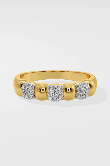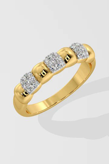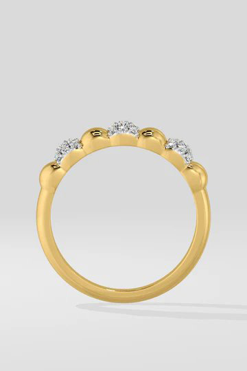 The Bubble Ring features a playful bubble nestled between the band, with diamonds placed around it for an added touch of elegance. Its unique design combines a modern aesthetic with timeless charm.