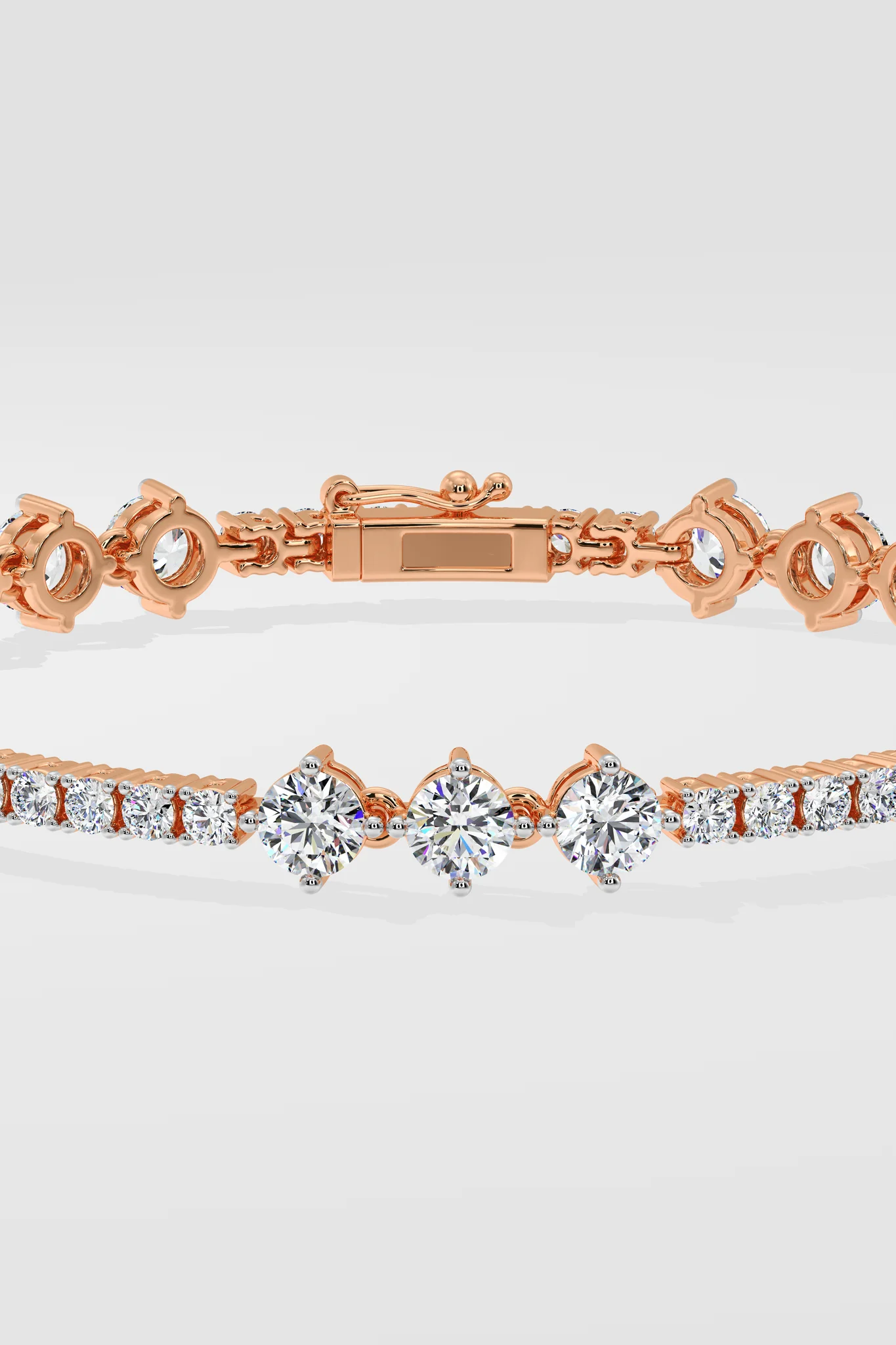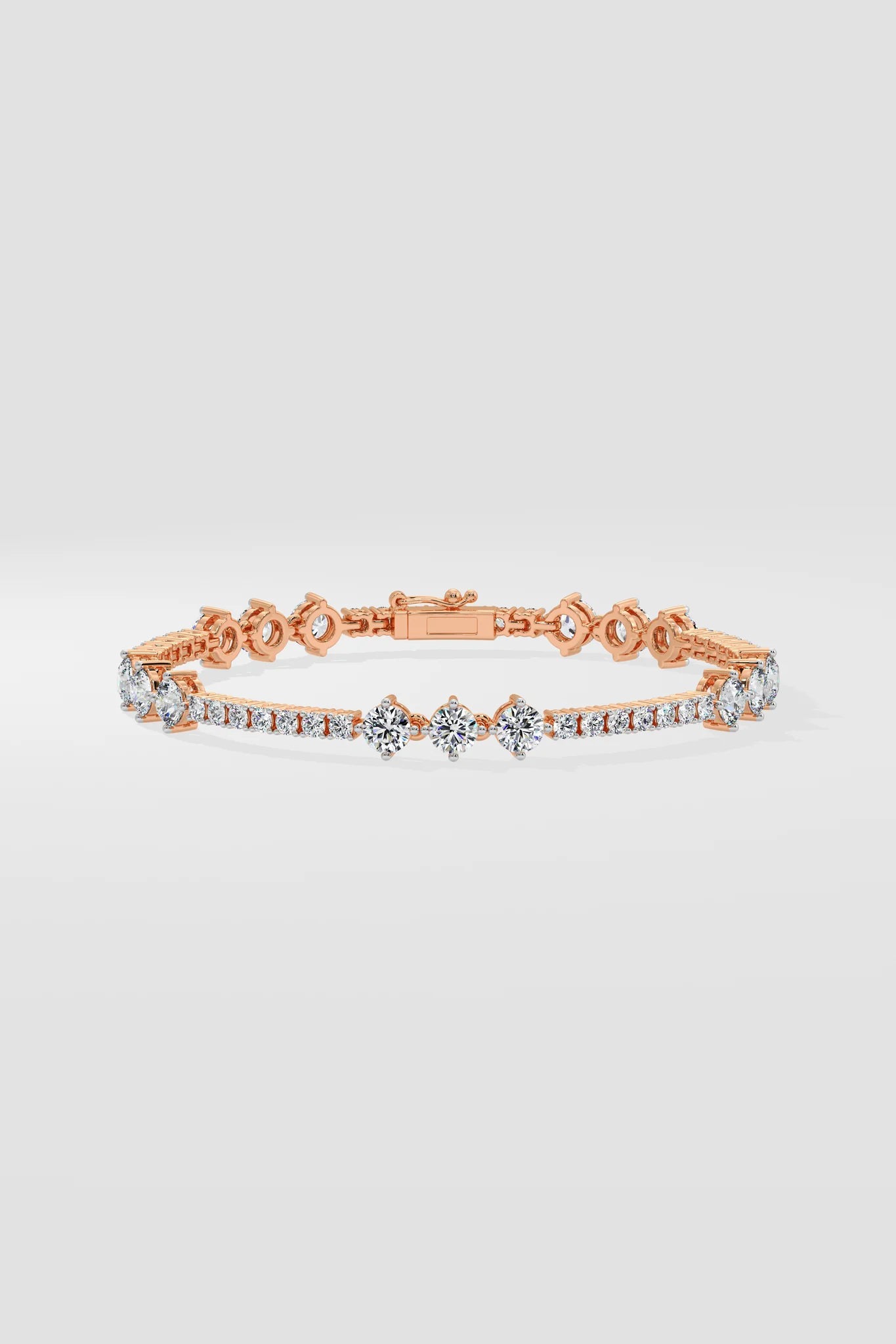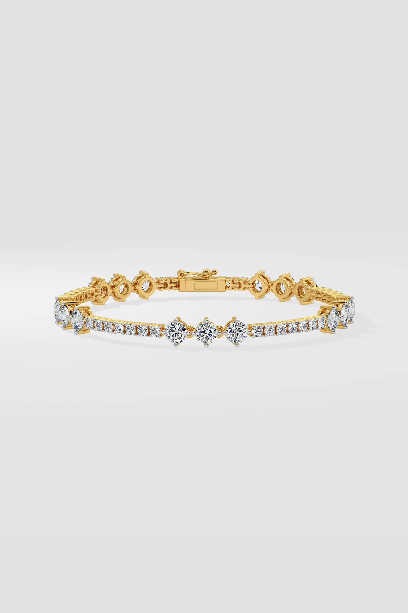 The Circlet Bracelet features a delicate row of diamonds accented by 0.20 pointer diamond trios placed elegantly in between. Set in a lustrous gold framework with intricate detailing, it strikes the perfect balance between sophistication and modern charm.