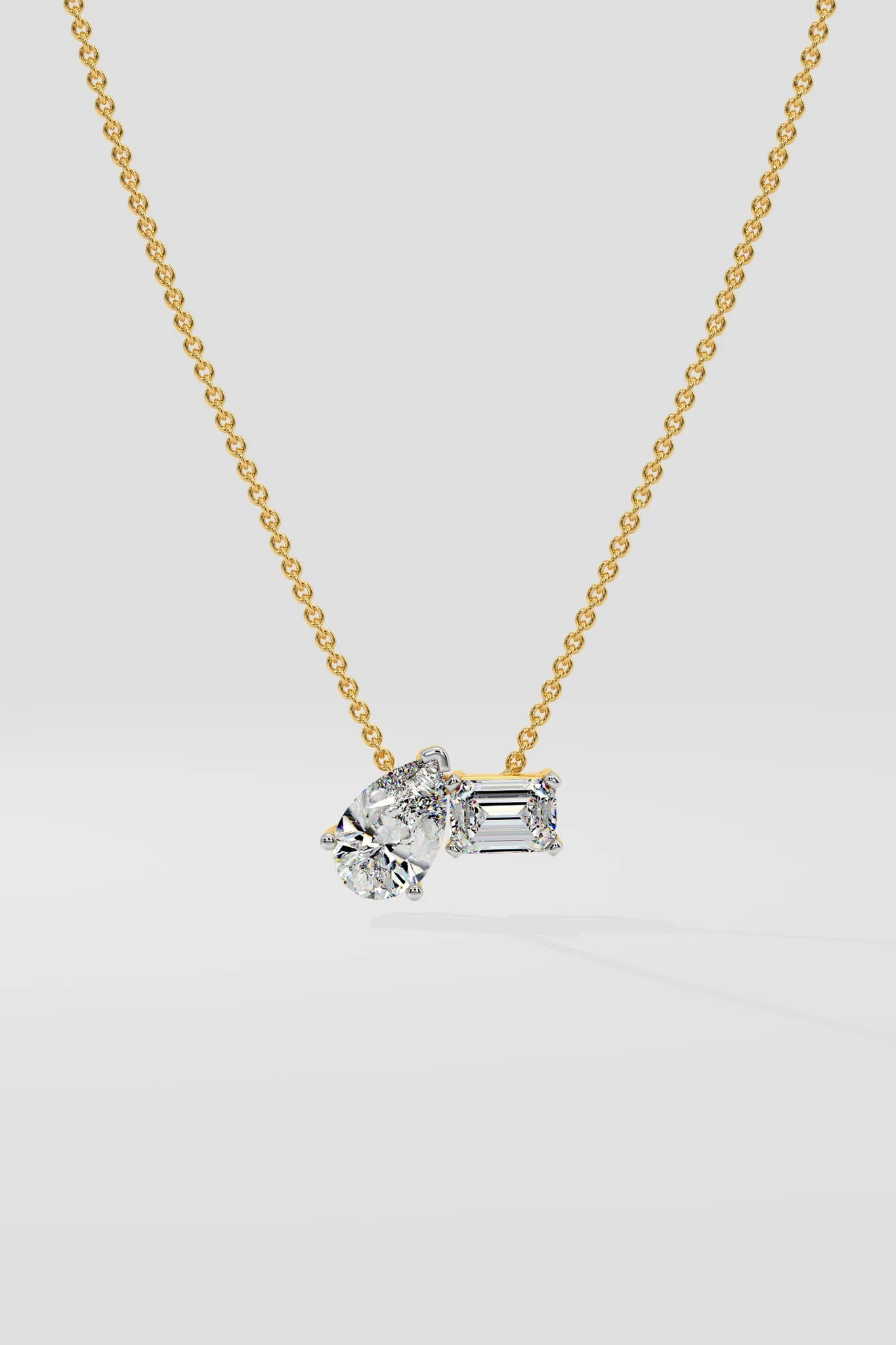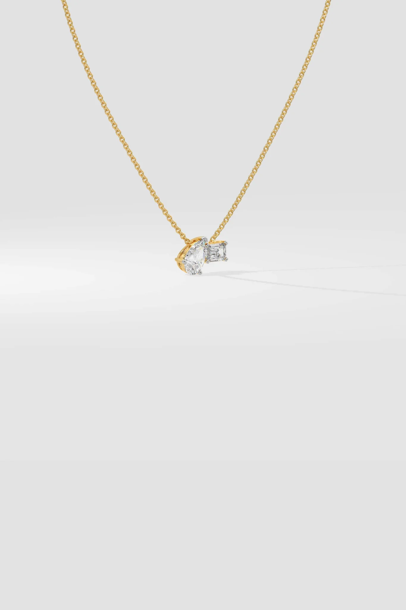 Unleash the power of the Pear & Emerald duo twist Necklace and make a statement! This stunning piece features not one, but two dazzling diamonds – a 1/3 ct Pear diamond and a 1/3 ct Emerald cut. The twisted design adds a modern touch to your everyday style, making you stand out from the crowd. Whether it’s for yourself or someone special, this necklace is sure to be cherished forever.