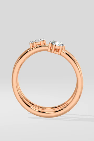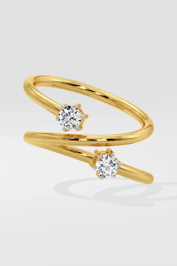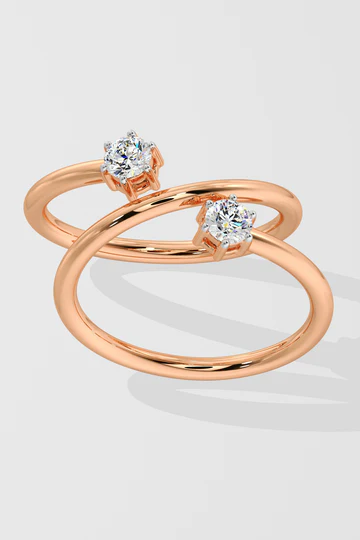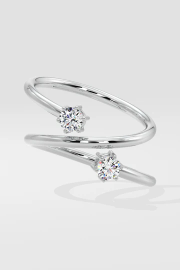 Eclipse Duo Ring has two 0.14-carat solitaire diamonds set on a sleek, open spiral band. Its spiral design adds a modern touch, symbolizing harmony. Perfect for everyday wear.