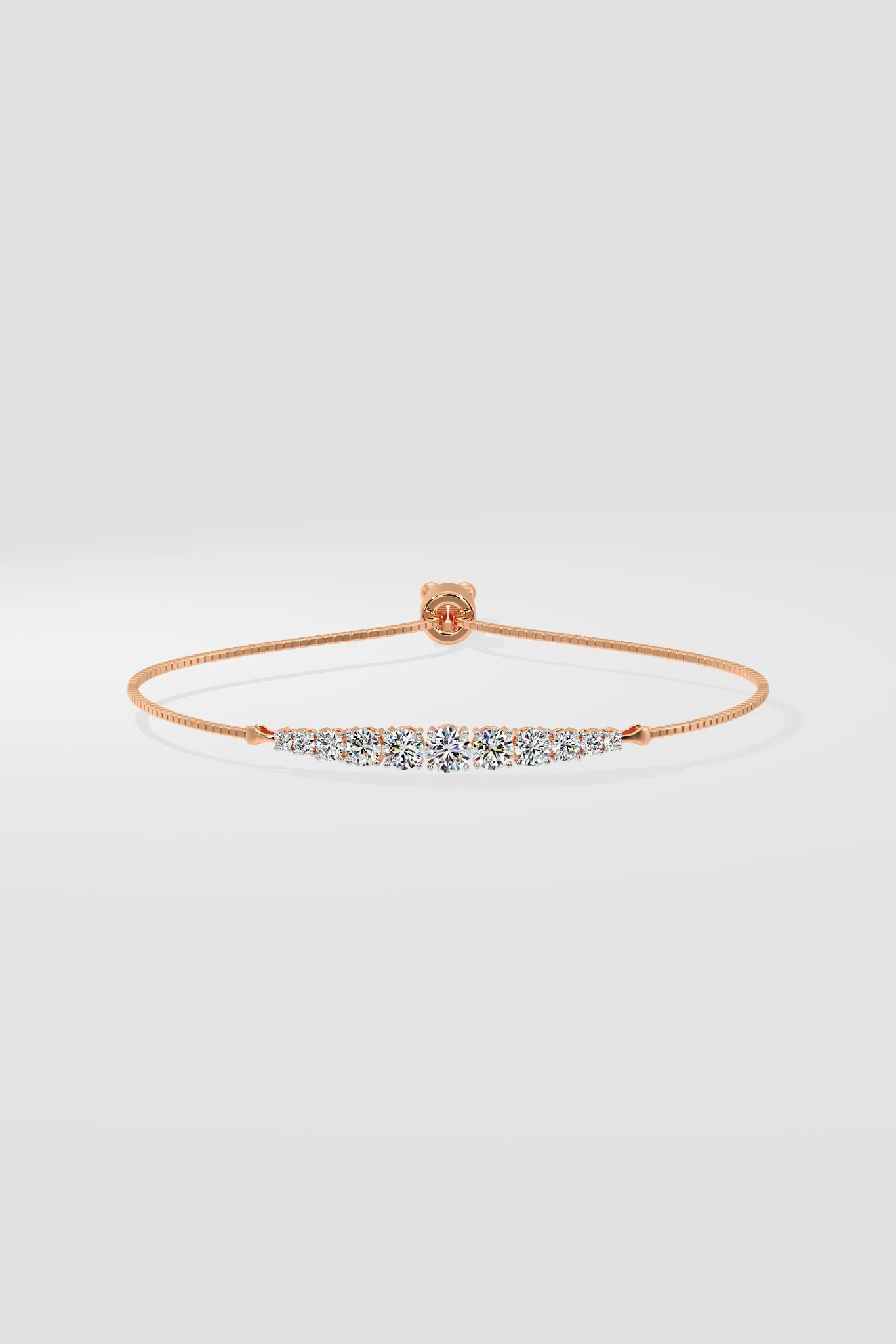 The Graduation Bold Bracelet is beautifully designed with a 1/4 ct center and then graduating diamonds on either side. The adjustable bolo chain makes this a comfortable fit for 6-7 inches and a fuss free option for your daily stack.