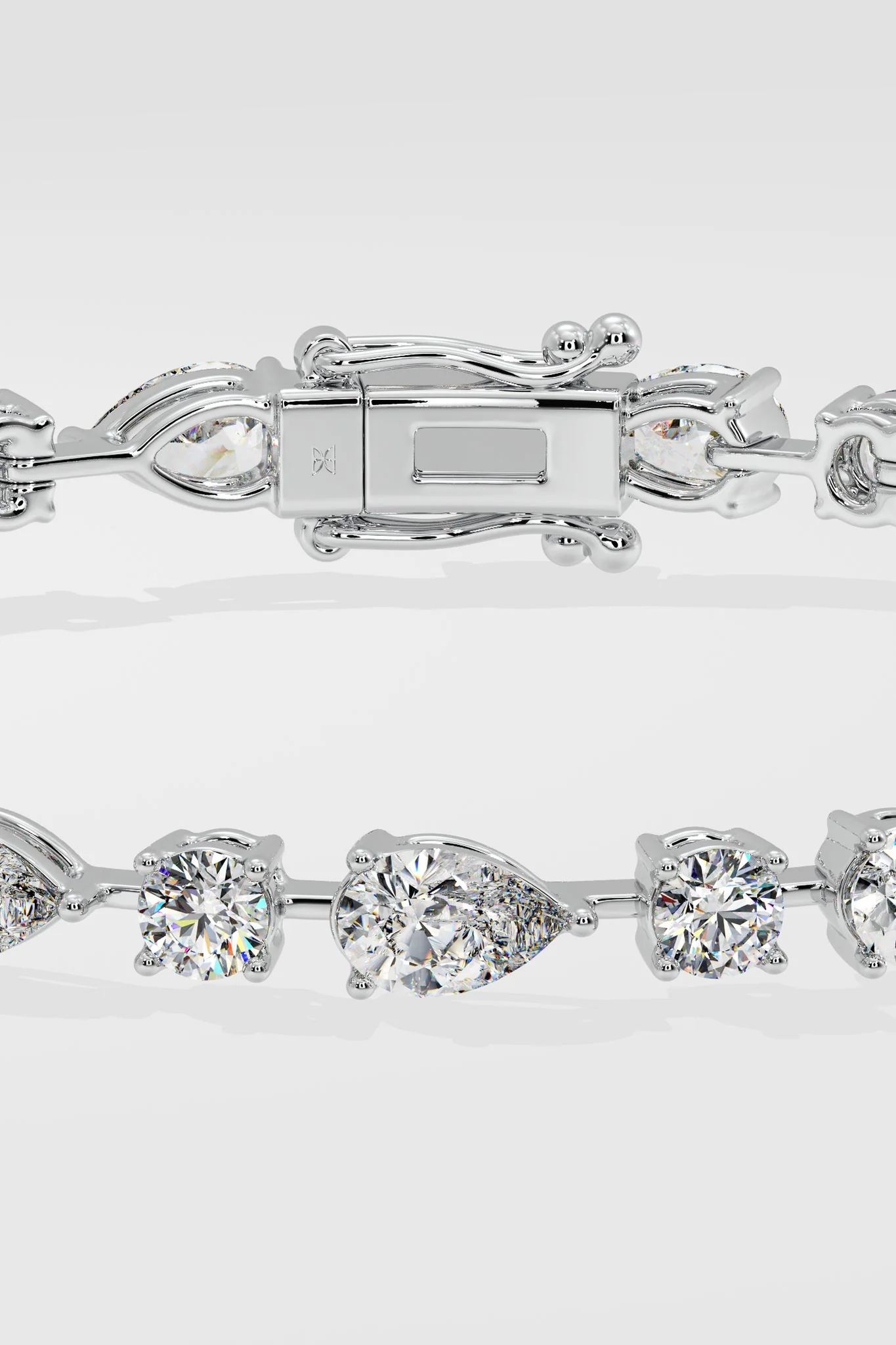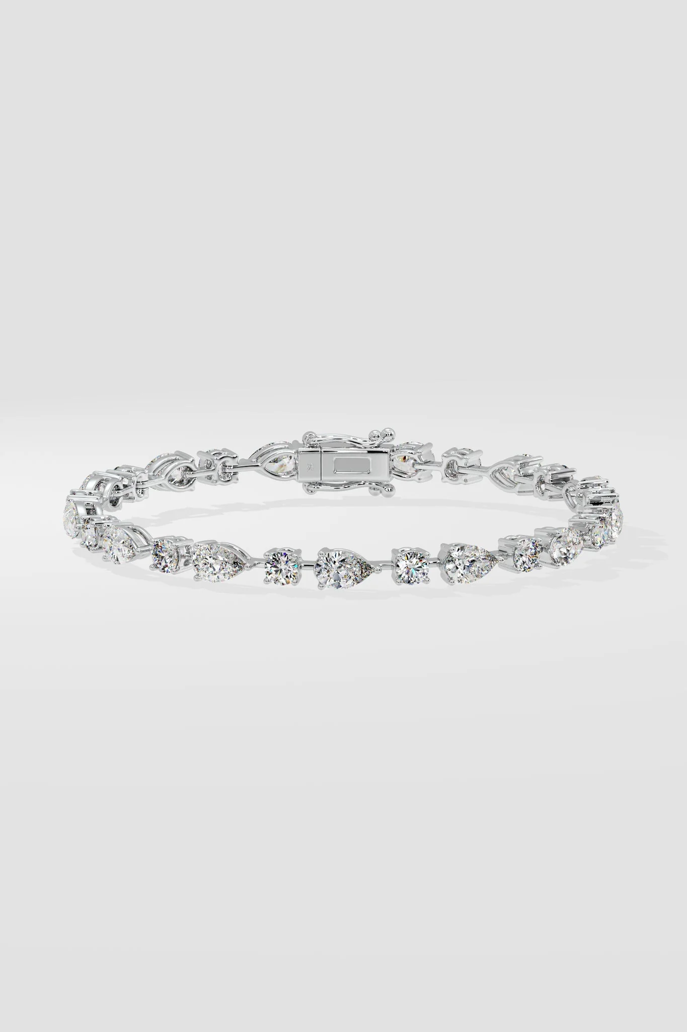 The Modena Bracelet is contemporary elegance. Made with an array of round and pear-shaped diamonds encircling its entirety. The pears are 0.30 ct each and the rounds are 0.14 ct each. Minimalist, classic and beautiful, this bracelet is the perfect accessory to pair with your watch or style individually.