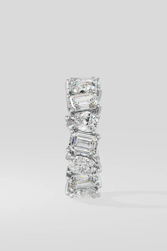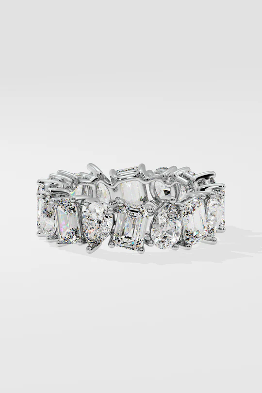 The Askew Eternity Band features 18 stones of 0.25 ct Emeralds & Pears. At 5.21 ct tag wt, this signature fancy ring perfect to wear stand alone or stack it.