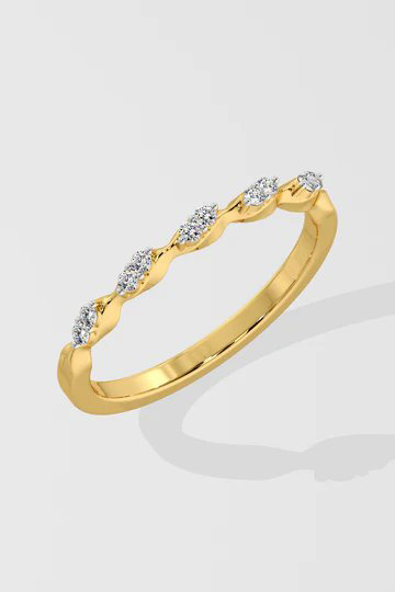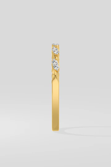 The Petal Ring is a nature-inspired ring featuring delicate petals adorned with two 0.01 pointer diamonds each, creating an elegant and graceful floral effect. Its dainty design captures the essence of refined beauty.