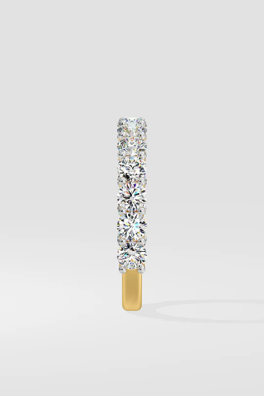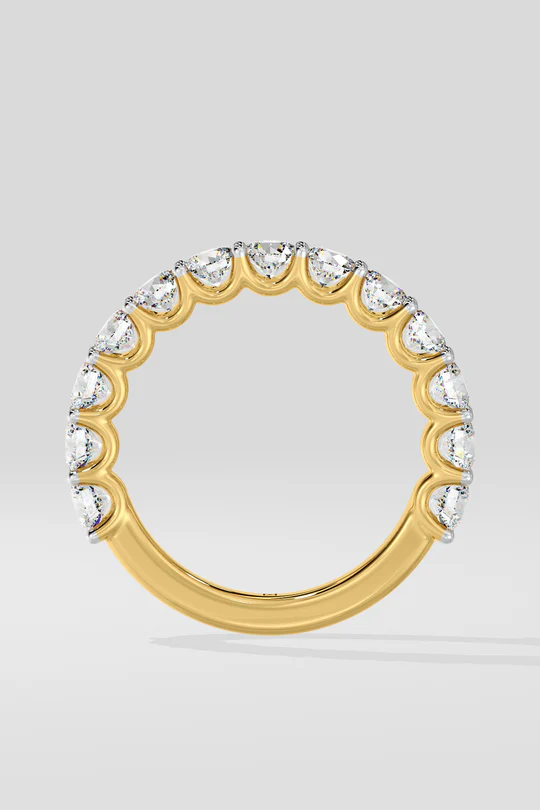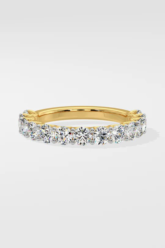 The classic Round Eternity Ring features 0.08 ct round brilliants in a prong setting for a timeless ring. Each scallop detail is beautifully prominent. A must have in your trousseau.