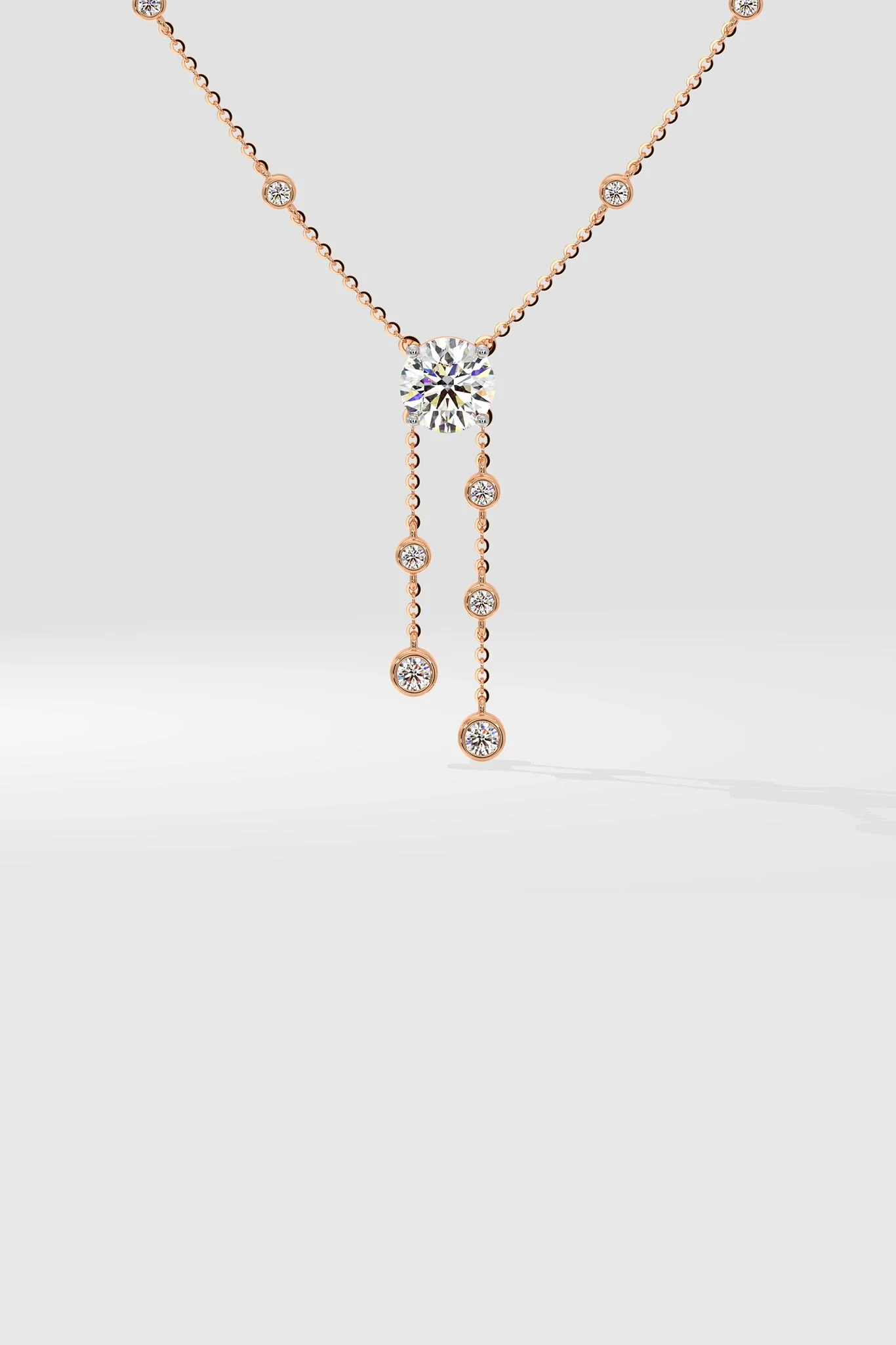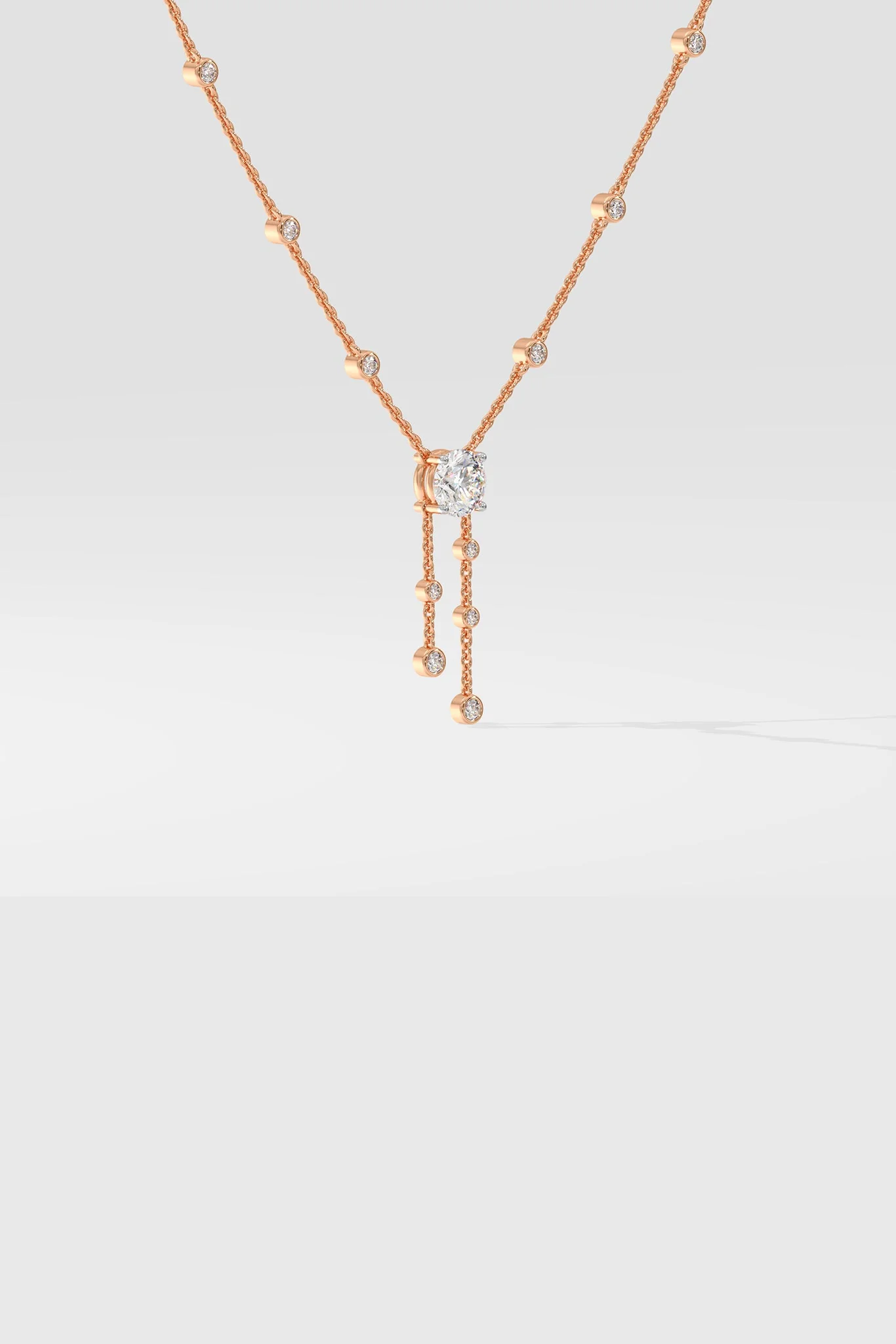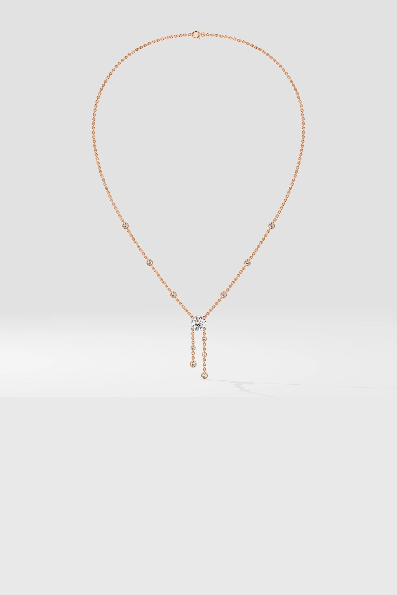 The Solitaire Drop Necklace features a classic 1 ct solitaire pendant accentuated with diamond drops and spaced small stones. A twist to the classic single stone pendant this delicate necklace will look great for everyday as well as for evenings out.