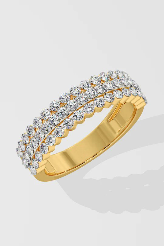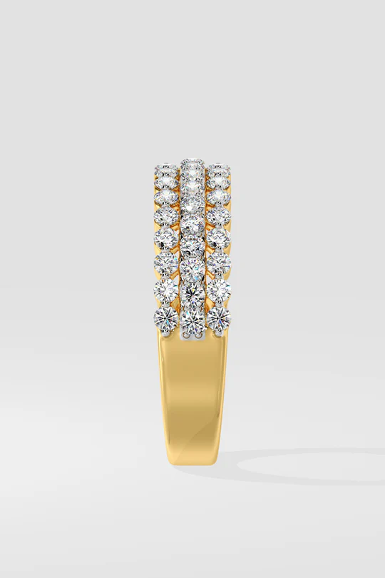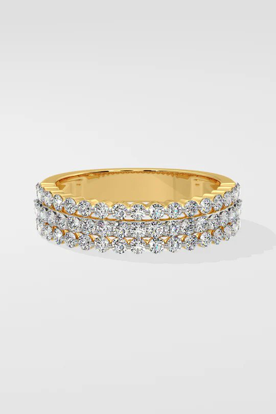 The Triad Diamond Band, is an all time classic band featuring three rows of small diamonds. This band’s refined design makes it perfect for everyday wear. Its subtle sparkle and sophisticated style make it a versatile addition to any jewellery collection.