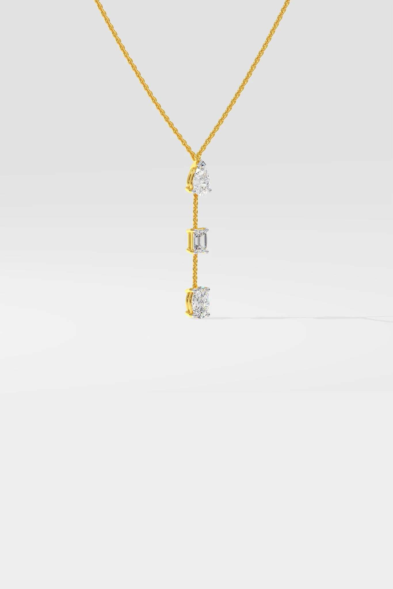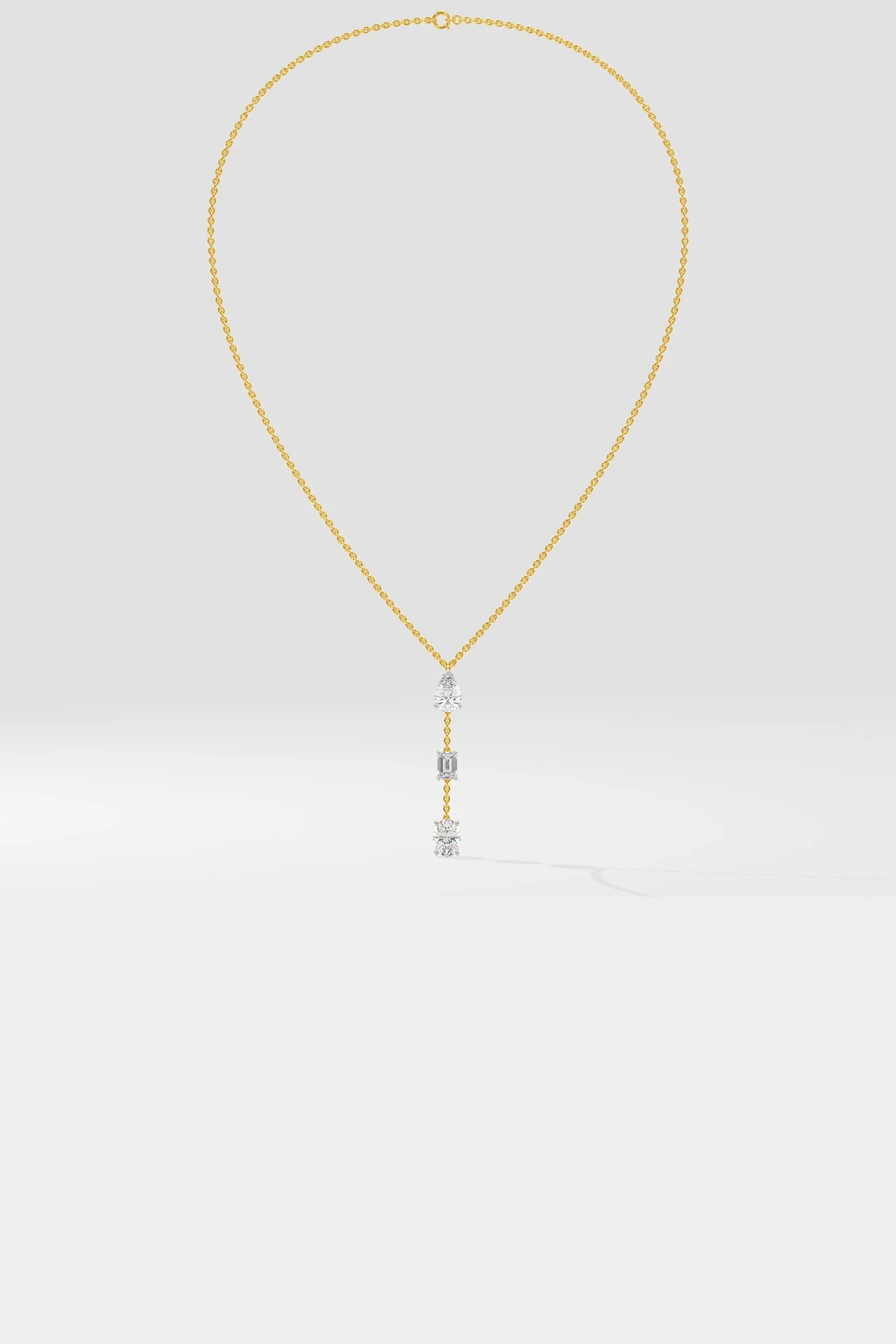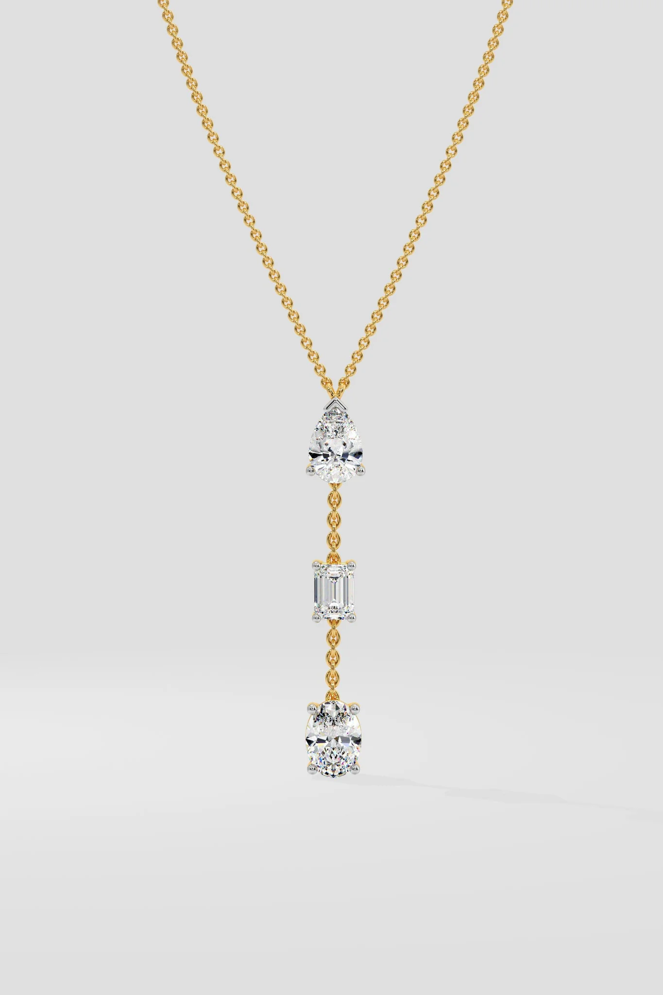 The Beyond Trio Drop Necklace showcases three 1/2 ct solitaires in pear, emerald cut and oval. Layer up for everyday stacks or go solo, the diamonds will shine through. Beyond Classics is where Natasha & HOQ are commingling a cool, casual and effortless style.